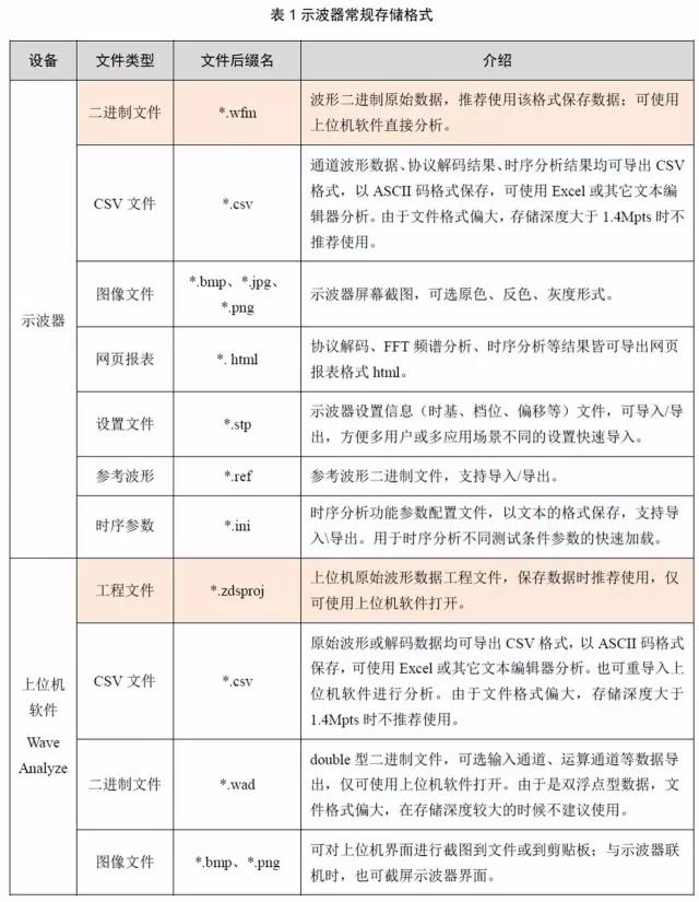 示波器的存(cún)儲就是将所需的(de)波形信息以不同(tong)的格式📱存儲下來(lai)便于我們做更深(shēn)入的分析,格式有(you)二進制數據、CSV數據(ju)、圖像格式、網頁報(bao)表、設置文件等🎯,詳(xiang)細信息如表🈚1所示(shì)。