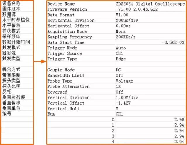 示波器(qì)的CSV數據文件裏,包(bāo)含設備信息、水平(píng)檔位、水平偏移💜等(deng)💃信息,如圖2所示。