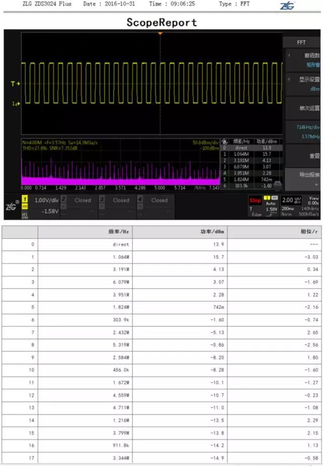 ScopeReport TM功能可以(yǐ)對所有的協議解(jie)碼和FFT的頻譜分析(xī)結果進行“打包”處(chù)理,自動生成html文件(jiàn)格式的報告,保存(cún)在🌈本地閃存和外(wai)💔部存儲器U盤中,用(yòng)戶可以以報表的(de)形式進行查看🙇♀️,如(ru)下圖☂️3爲FFT網頁報表(biao)。
