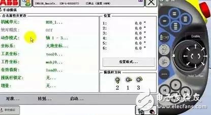 動(dòng)作模式中(zhōng),選擇軸 4-6。按(àn)下使能器(qì)到第一檔(dàng),手動操縱(zong)杆左右方(fang)向可以控(kòng)制Axis4運動,上(shàng)下方向控(kong)制Axis5運動,旋(xuan)轉操縱杆(gǎn)控制Axis6運動(dòng)。