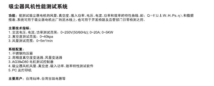 您(nín)的位置: 産品與(yu)服務 >> 吸塵器風(feng)機性能測試系(xì)統