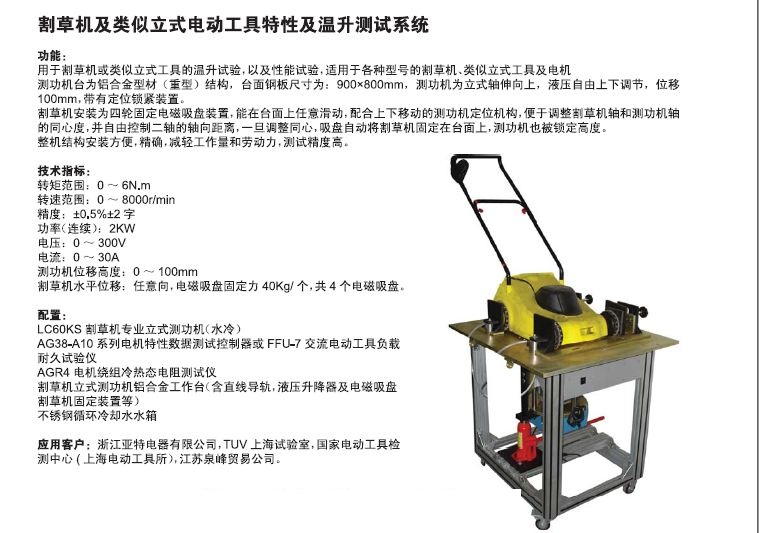 您(nín)的位置(zhi): 産品與(yǔ)服務 >> 割(gē)草機及(ji)類似立(li)式工具(ju)特性及(jí)溫升測(ce)試系統(tǒng)