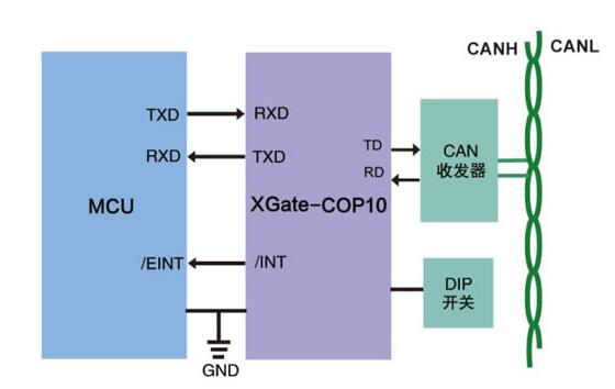 XGate-COP10通信(xin)模塊是一(yī)款使用簡(jian)單方便的(de)CANopen從站模塊(kuai),模塊内部(bù)已經固化(hua)了CANopen從站協(xie)議棧,使用(yòng)緻遠電子(zǐ)的簡單串(chuàn)口通信協(xie)議就能實(shi)現與XGate-COP10的通(tong)信,如下圖(tú)所示: