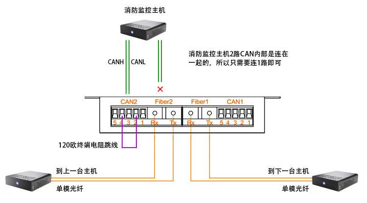 CANHUB-AF2S2與西門子消防監(jiān)控主機的連線方(fāng)式如圖所示: