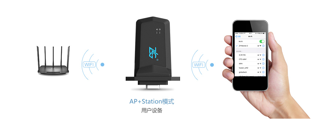 模塊不僅支(zhi)持常用的AP、Station工作模(mó)式,且支持AP&Station兩種工(gōng)作模式同時⭐工作(zuò),模塊在接入到路(lù)由器的同時,也可(ke)以作爲熱點允許(xǔ)其他設備連接,例(lì)如在工作的同時(shi)可方便接入進行(háng)無💋線配置❗。
