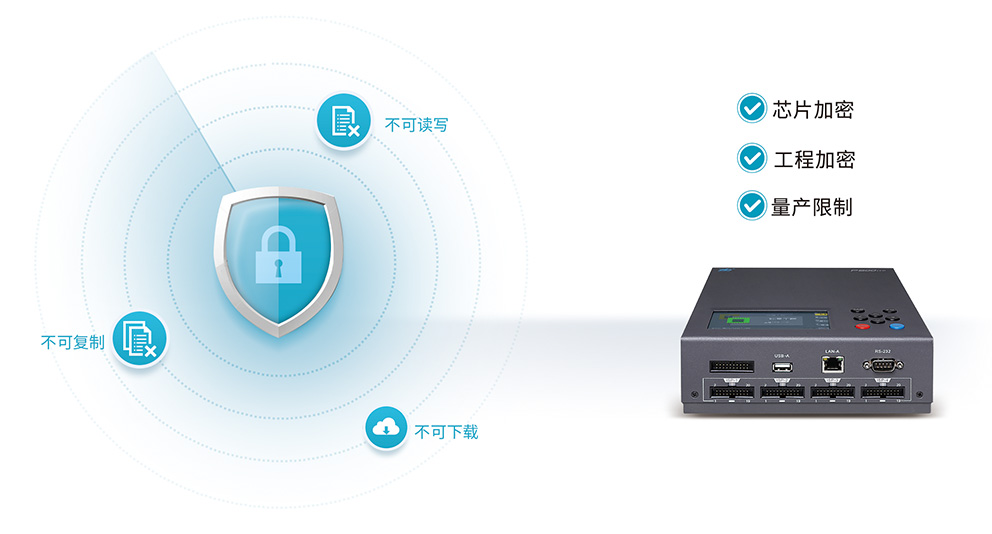 在投入巨大(dà)的研發成本(běn)後,如何才能(neng)保證設計出(chū)來的産品不(bu)被第三方任(ren)意複制?雲燒(shāo)錄系統有效(xiào)地解決了工(gong)程加密和工(gong)程管理的問(wèn)題。研發人員(yuán)隻需将加密(mi)工程提交到(dao)雲端(服務器(qì)),隻有被授權(quan)人才能打開(kai)加密工程,授(shou)權人仍可随(suí)時通過服務(wu)器,實時跟蹤(zong)燒錄狀況,進(jìn)而掌握整個(ge)産品的生産(chan)流程!