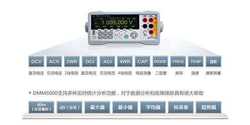 DMM6000可提(ti)供多達13種測量測試功能(neng),包括DCV、DCI、ACV、ACI、電阻、電(diàn)容、連通性、溫度等(děng),可滿足研發、測試(shì)及生産所需💃的各(ge)項精密測量要求(qiú)。
