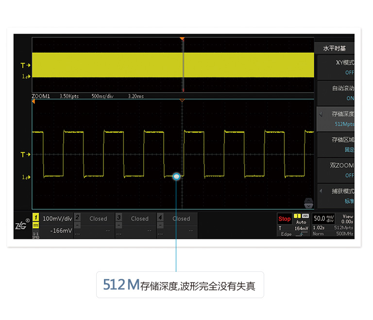 存儲(chǔ)深度等于采樣率(lü)乘以采樣時間,512M超(chāo)大存儲深🧑🏾🤝🧑🏼度,長✉️時(shí)間捕🌈獲波形,依然(rán)不會出現波形失(shī)真。