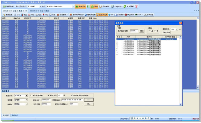 3.高(gāo)級操作可預(yù)定義100幀,并且(qiě)可設置發送(sòng)次數與間隔(gé)