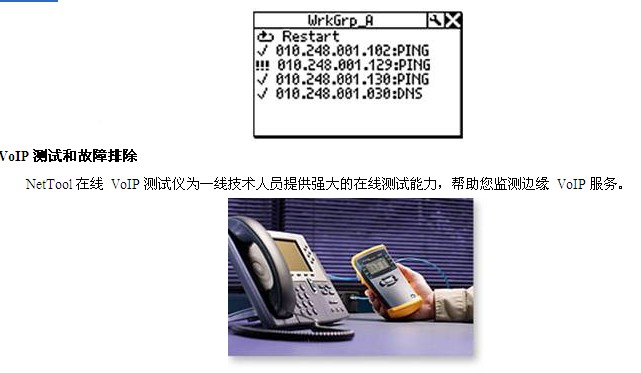 · VoIP 故障排(pai)除 --- 在線連(lián)接,深入洞(dòng)察 VoIP 呼叫,快(kuai)速診斷 IP 電(dian)話🔱啓動、通(tong)✔️話控🐅制問(wen)題,并測量(liang)關鍵性的(de)呼叫質量(liàng)指标