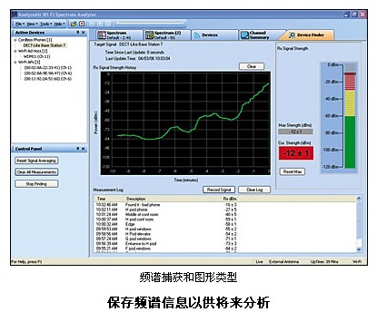 使用 AnalyzeAir Wi-Fi 頻譜分(fèn)析儀Wi-Fi 智能頻譜(pu)分析儀能夠清(qing)晰地看🈲到 802.11b/g 和 802.11a WLAN 使(shi)用的未經許可(ke)的 2.4 GHz 和 5 GHz 頻率。即便(biàn)不是 RF 工程師,也(yě)能夠快速定㊙️位(wei)和解決㊙️無線網(wang)絡的問題。AnalyzeAir 軟件(jiàn)将🏃♀️ RF 專家常用的(de) RF 工💃🏻具集成于一(yi)個易于使🐇用的(de)界面中,讓您能(neng)夠👈方便地實現(xian) RF 分析自動化。