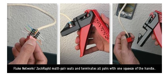 福祿(lu)克網絡公司的 JackRapid 壓(yā)線器支持 Systimax 和 Uniprise 插座(zuò),包括 Systimax Cat 5e、Uniprise Cat 6 和 Leviton Cat 5e。獲得專利(lì)的插座端接技術(shù)使您能以比傳統(tong)沖擊型工具快 8 倍(bei)的速度來方便地(dì)固定和端接插座(zuo)。