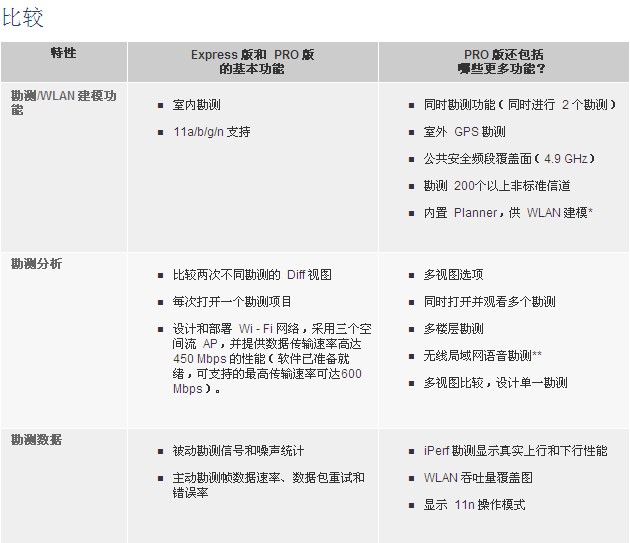 AirMagnet Survey 包(bao)括 “Express” 和 “Pro” 兩款産(chǎn)品。AirMagnet Survey Express 提供簡化(hua)的解決方案(àn)版本,允許用(yong)戶執行基本(ben)的 Wi-Fi 站點勘測(cè)功能,并顯示(shi)有關信号、信(xin)噪,甚至用戶(hu)性能的視圖(tú)。AirMagnet Survey Pro 提供 Express 版本的(de)所有功能,并(bing)添加了業界(jiè)領先的強大(dà)功⛱️能,其中包(bāo)括其中包🐪括(kuò) 802.11n 部署、多樓層(céng)部署🌐、室外勘(kān)測、網絡設計(jì)🏃🏻♂️驗證、語音就(jiù)緒驗證和🈲勘(kān)測、射頻頻譜(pǔ)分析等等。