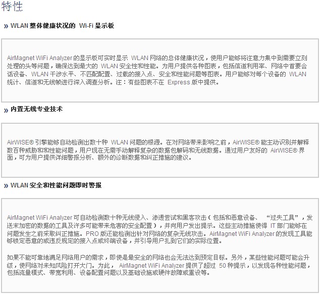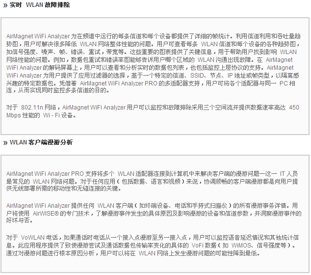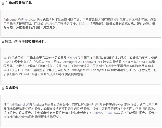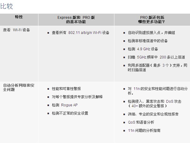 AirMagnet WiFi Analyzer 包(bao)括 “Express” 和 “Pro” 兩款(kuan)産品。AirMagnet WiFi Analyzer Express 提供(gòng)主要的 WiFi 故(gu)障處理和(he)審查功能(neng),可以查看(kàn)🐪設備、自動(dong)識别常見(jian)問題以及(jí)定位特定(dìng)設備的🥵位(wèi)置。AirMagnet WiFi Analyzer PRO 提供 Express 版(bǎn)的所有功(gōng)能,并添加(jia)了很多其(qí)他功🌍能,爲(wèi)客☁️戶提供(gong)了一個可(kě)以解♋決任(ren)何性能☁️、安(an)全性或報(bào)告難題的(de) Wi-Fi 工具。