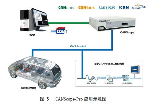CANScope-Pro應用(yong)在汽車電子網(wǎng)絡或者工業自(zì)動化網絡中如(ru)下圖所示。