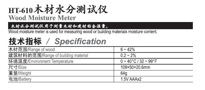 您(nín)的位置(zhi): 産品與(yǔ)服務 >> HT-610木(mù)材水分(fen)測試儀(yí)